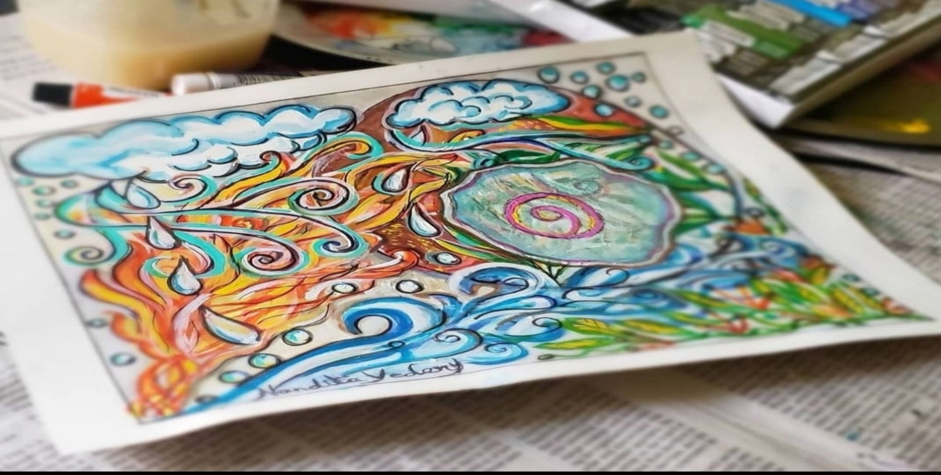 Nature is a major influencer in my paintings. I have a concept but the style and techniques are not planned. I paint what I feel and let my emotions guide me. Most often I detach from that work and come back to with fresh narrative to enhance and bring a spark to it. I am fluid in my art expressions. I paint on different surfaces with different mediums and enjoy the freedom and space art gives me to explore, evolve and create.